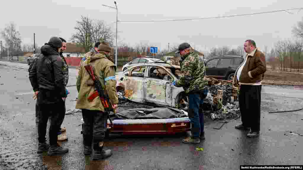 Там російські війська залишили після себе велику кількість пошкодженої та зруйнованої техніки. Просто на вулиці лежать тіла вбитих жителів села. Російські військові продовжують блокувати Чернігів, обстрілюючи інфраструктуру. Місто знищене на 70%, заявив напередодні в ефірі телемарафону міський голова Чернігова Владислав Атрошенко.